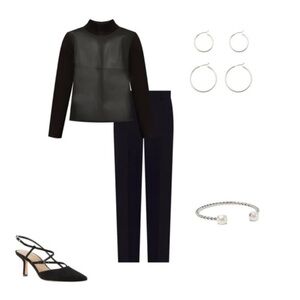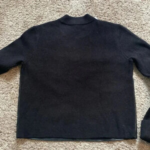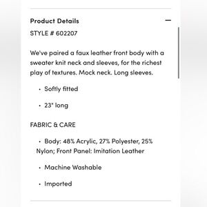 BNWT. Black mock neck sweater with faux leather material on front. Backside of sweater is sweater material. Never worn.