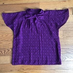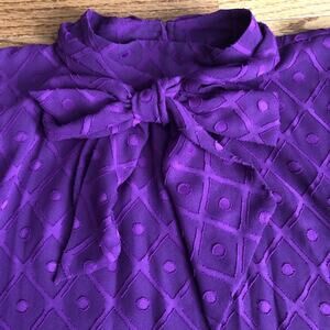Ann Taylor Mock Neck Bow Lined Polka Dot Purple Top Women’s Size S