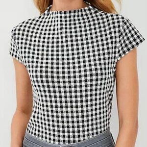 Ann Taylor Mock Neck Cap Sleeve Plaid Top (Black, Red & White)