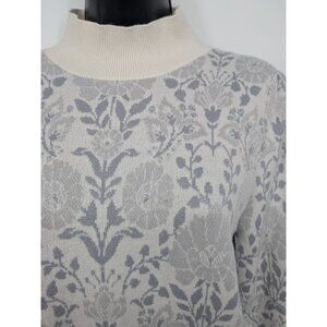 Ann Taylor Mock Neck Jacquard Floral Knit Sweater Size M Pullover Cottage Cozy
