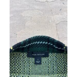Ann Taylor Mock Neck Long Sleeve Sweater Women's S Green Plaid Soft Cozy