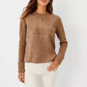 Ann Taylor Mock neck sweater with suede