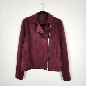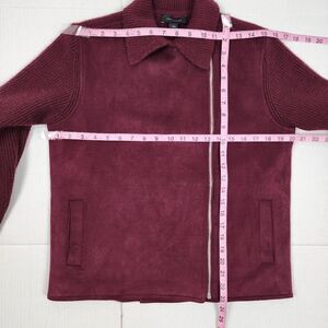 Ann Taylor Moto Jacket Faux Suede Knit Zip Sweater Burgundy Size M
