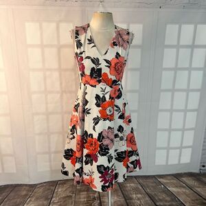 Ann Taylor Multicolor Floral Sleeveless V-Neck Fit & Flare Dress Size 4P