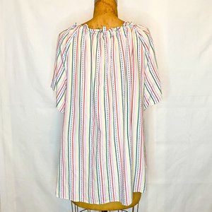 Brightly colored, tasseled, and tied, this flowy top will fresh up any look with wanderlust appeal. Round neck with tie keyhole. Short raglan sleeves. Great condition - NWOT!