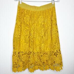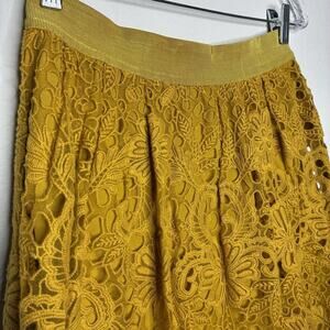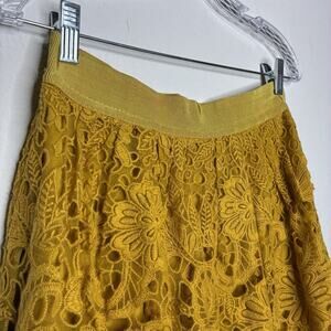 Ann Taylor Mustard Yellow Floral Crochet Lace Elastic Waist Skirt 2