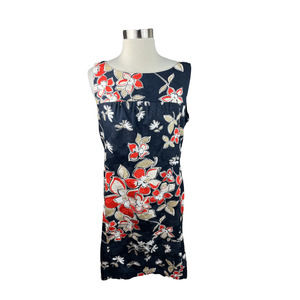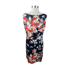 Ann Taylor NEW 10 Navy Orange Floral Brocade Lined Sleeveless Dress
