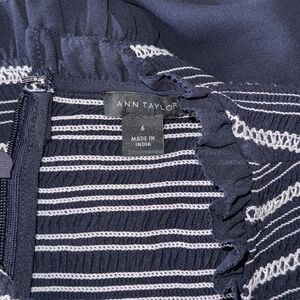 Annβ Taylor NWOT Smocked Bodice Ruffle Sleeve Fit & Flare Dress 6 Blue White