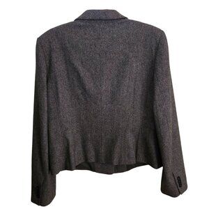 Ann Taylor NWT Brown Wool Blend Tweed Cropped Blazer Zip Pockets Size 14