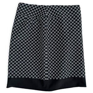Ann Taylor NWT Cotton Wool Pencil Skirt Size 6 Petite Black White Geo Crochet Mini Short Embroidered Lined Preppy Twee