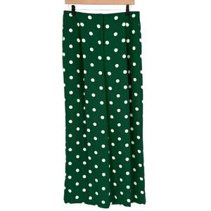 Ann Taylor NWT Wide Leg Pants 10P Green Polka Dot Crepe High Rise Pleated READ