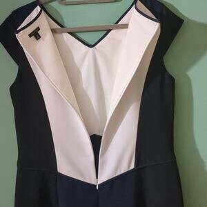Preloved condition, and Taylor cap sleeve Color block dress in Navy, black, and ivory.