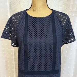 🌌 Ann Taylor Navy Blue Eyelet Shift Dress – Size 4 🌌