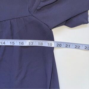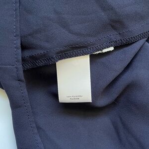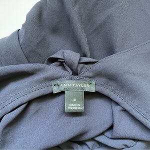 Ann Taylor navy blue tie back blouse. In excellent condition! Crew neckline. Short wide sleeves. Fitted under the chest. V back with tie closure detail. Navy blue color. Size medium.