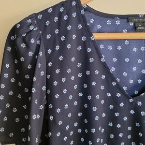 Ann Taylor | Navy Blue Floral Print Short Sleeve Blouse.