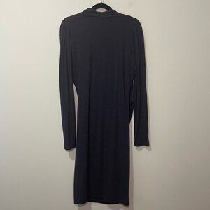 Ann Taylor Navy Blue Jersey Knit Long Sleeve Faux Wrap wool blend Dress Size 14