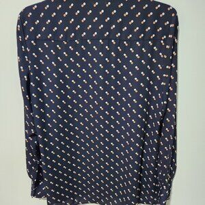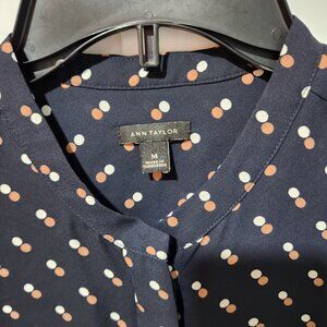 Ann Taylor Navy Blue Long Sleeve Classic Button Down Polka Dot Blouse -Medium