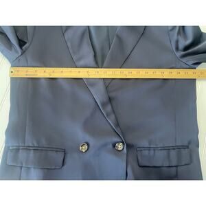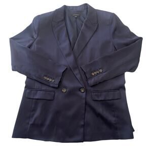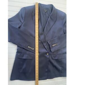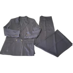 Ann Taylor Navy Blue Satin Blazer Matching Wide Leg Pant - Size Women's 14