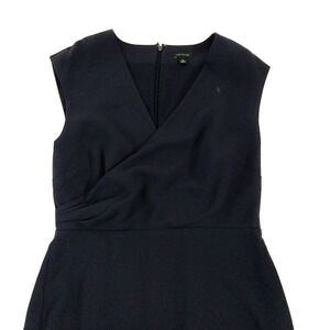Ann Taylor Navy Blue Sheath Dress Size 6 Cap Sleeve Faux Wrap Crepe Career