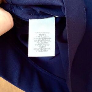 Light and airy navy blue sleeveless blouse. Fabric feels like a lightweight crepe. Excellent preowned condition, no known flaws. See photos for additional details.