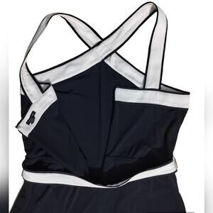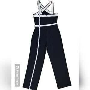 Ann Taylor Navy Blue White Belted Sleeveless Straight Leg Casual Jumpsuit Size 8