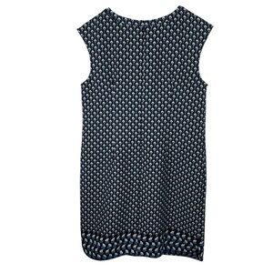 Ann Taylor | Navy Blue White Print Split Neck Cap Sleeve Shift Dress