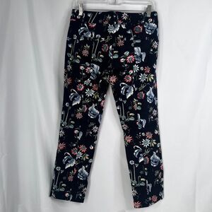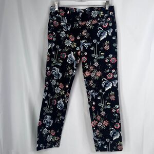 Ann Taylor Navy Floral Print Devin Fit Cotton Ankle Pant Garden Party Size 2/SM