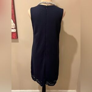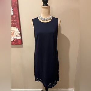 Ann Taylor Navy Laser Cut Scalloped Hem Shift Dress, size 2