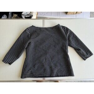 Ann Taylor Navy Midnight White Boatneck Stripe 3/4 Sleeves Blouse Size Small