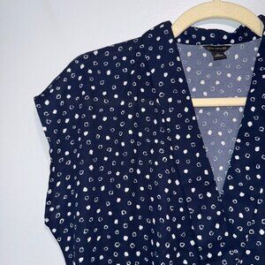 Ann Taylor Navy Polka Dot Sleeveless Wrap Blouse XS