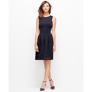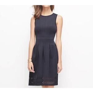 Ann Taylor Navy Ponte Knit Laser Cut Dress Women's Size 0 Sleeveless Career XS