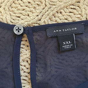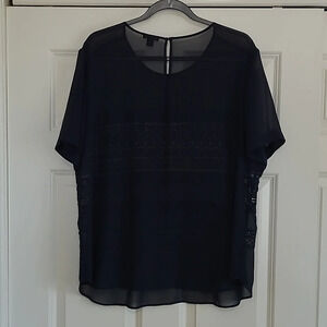 Ann Taylor Navy Sheer Short Sleeve Blouse with Crochet Details - Size XXL
