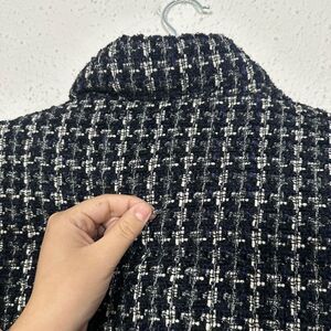 Ann Taylor Navy Silver and White Houndstooth Puffer Jacket Large Petite