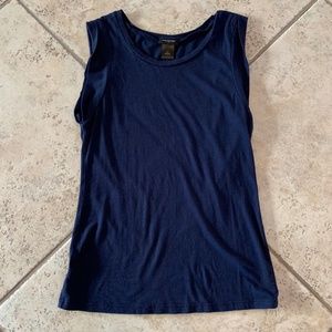 Cute Ann Taylor sleeveless top. Soft navy fabric with folded hem on sleeves. 60% cotton, 40% modal. Size XS.