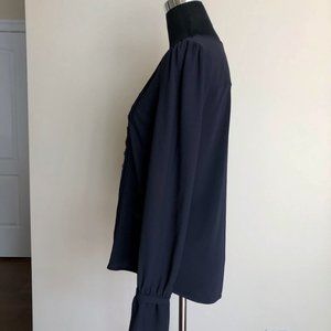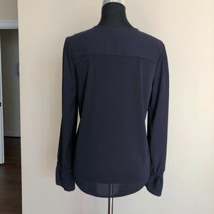 Anne Taylor navy blue top shirt, drape well, great for office or casual, relaxed sleeve is very comfortable. Snap closure at the neck. Size S, true to size. Gently worn, great condition. Non Smoking house