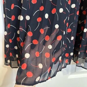 Pre-owned Ann Taylor midi skirt size XXS in very good condition! Color is navy with red and white polka dots. Fully lined, pleated style. No flaws, smoke free home. A little over 26” waist, a bit over 27” length. Stretchy waistband.