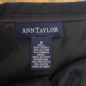 Super cute navy skirt with various white and navy ribbons sewn in a diagonal pattern. I love this skirt, but doesn’t fit anymore. Looks great with a white top and stewpot navy or neutral sandals. Side zip, button and hook/eye closure. Fully lined. Lining has a slit in it to accommodate the slight stretch in the skirt.