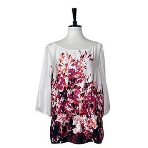 Ann Taylor New Top Wide Neck Peplum Cream Black Pink Floral Women’s Size XL