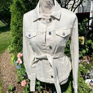 Ann Taylor New belted bleached Jean Jacket in size XS