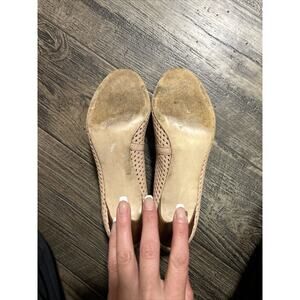 Ann Taylor Nude Leather Perforated Heels, Size 10, Almond Toe