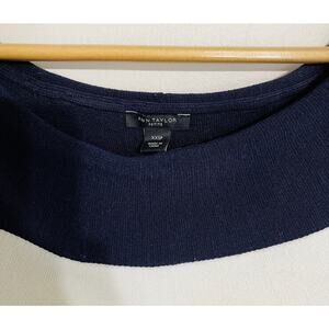 Ann Taylor Off The Shoulder Sheath Sweater Dress Striped White Navy Size XXS