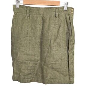 Ann Taylor Olive Green 100% Linen Skirt Sz 10 Minimalist Chic Vintage 90s Summer