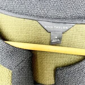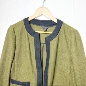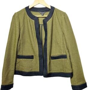 Ann Taylor Olive Green Black Contrast Trim Open Front Nubby Cropped Jacket Med