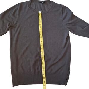 This is an Ann Taylor olive green knit sweater in size medium. It is in great condition and would be a great addition to your wardrobe. The sweater is made of a soft, comfortable knit material and features a flattering fit. It is perfect for layering or wearing on its own. Don't miss out on this wardrobe staple!