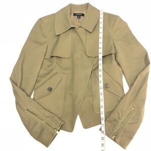 Full zip closure. Zipper details at the sleeves. 99% Cotton, 1% Spandex. In excellent used condition. No stains, rips, or holes. Please see all photos for details and measurements. From a smoke-free, pet-free home. Any questions? Don't hesitate, ask away!