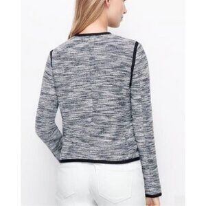 Ann Taylor Open Front Blue Tweed Knit Blazer Jacket w/Pockets Size S Cardigan