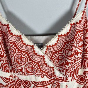 Ann Taylor Paisley Dress Red/White Spaghetti Straps Mini 100% Cotton Size 0P