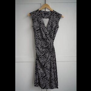 Ann Taylor Paisley Wrap Dress, Black & White, XXS