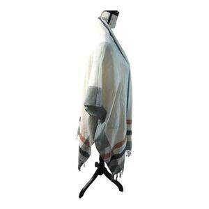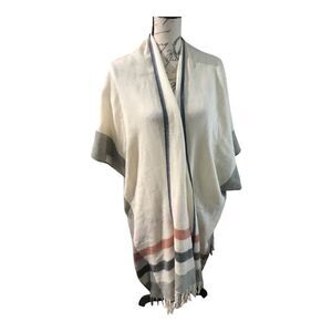 Ann Taylor colors blue/cream/pink/gray one size fits all all measurements are 37 inch pit to pit 37 inch length missing labels but it’s 72% acrylic 28% wool French lower level excellent condition no issues P 154 A 319