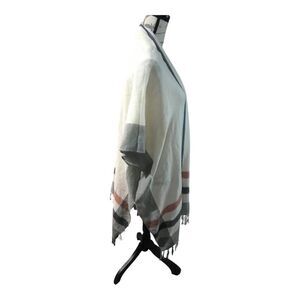 Ann Taylor colors blue/cream/pink/gray one size fits all all measurements are 37 inch pit to pit 37 inch length missing labels but it’s 72% acrylic 28% wool French lower level excellent condition no issues P 154 A 319